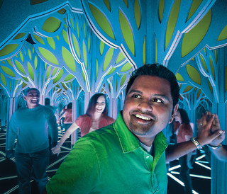 The enthralling centerpiece of this math lesson is a giant mirror maze—a sea of equilateral triangle chambers that will make you feel like you’ve stepped into a kaleidoscope. The mirror maze itself is a pattern, combining several characteristics of geometric patterns: repetition, symmetry, and tessellation. Unexpected dead ends trigger intriguing questions, and a hidden chamber provides more surprises.