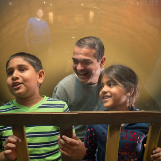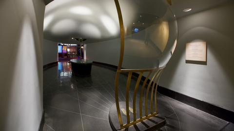 A Museum favorite since 1938, the acoustic Whispering Gallery still sounds as good as it looks. You and a friend stand with your backs to each other at either end of this long room. When you whisper into the curved dish in front of you, your friend across the room hears you as though you are just inches away. No wires, no power. Can you figure out how it works?