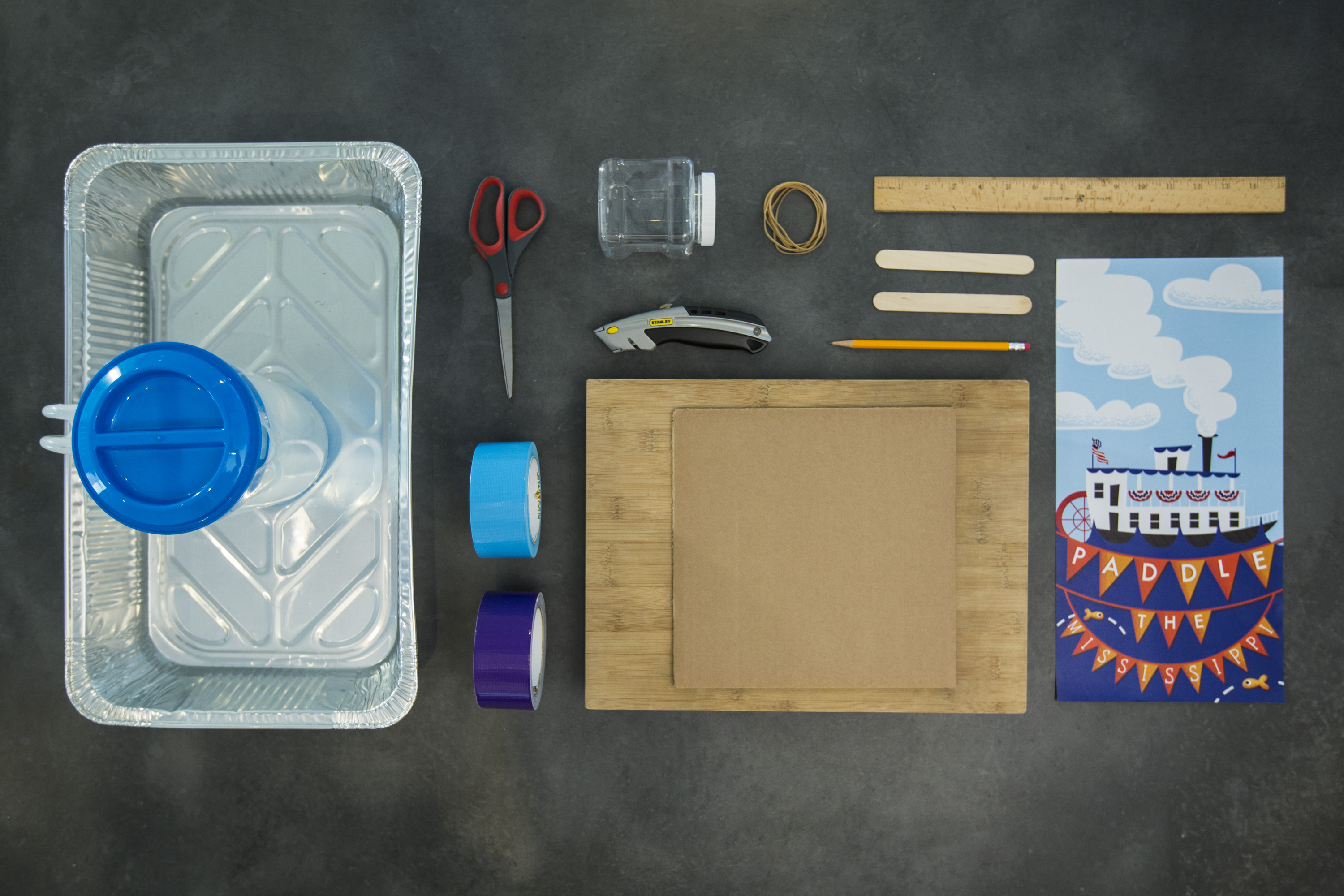 Change your boat design to see if you can make it move faster or travel farther. Use a lightweight plastic container, tape two craft sticks or straws on either side and attach the rubber bands and paddle to the end of the craft sticks. Try other materials that float and don’t get soggy in water, such as wood or Styrofoam. Decorate your boat, and see if you can give a toy figure a ride!